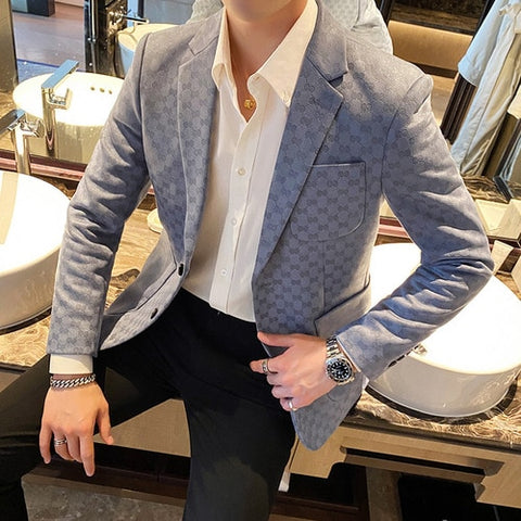 2020 Men Blazers British Style Printed Blazer Masculino Wedding Business Casual Suit Jacket Streetwear Social Coat Ropa Hombre