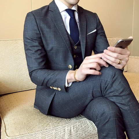 ( Jacket + Vest + Pants ) New Fashion Boutique Men's Plaid Formal Business Suit 3 Piece Set / Men's High-end Casual Suits